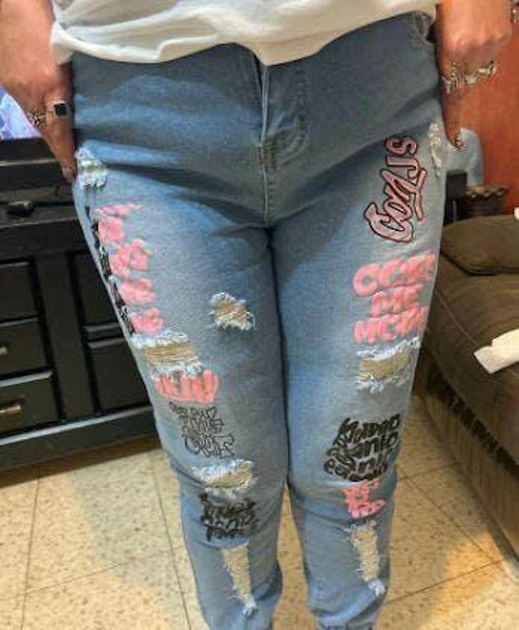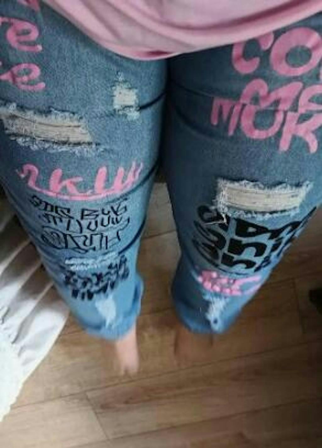 Blugi eleganți cu imprimeu care combină confortul și designul modern.