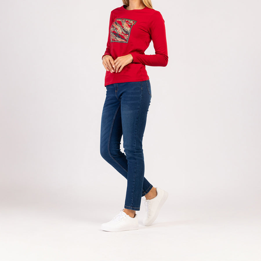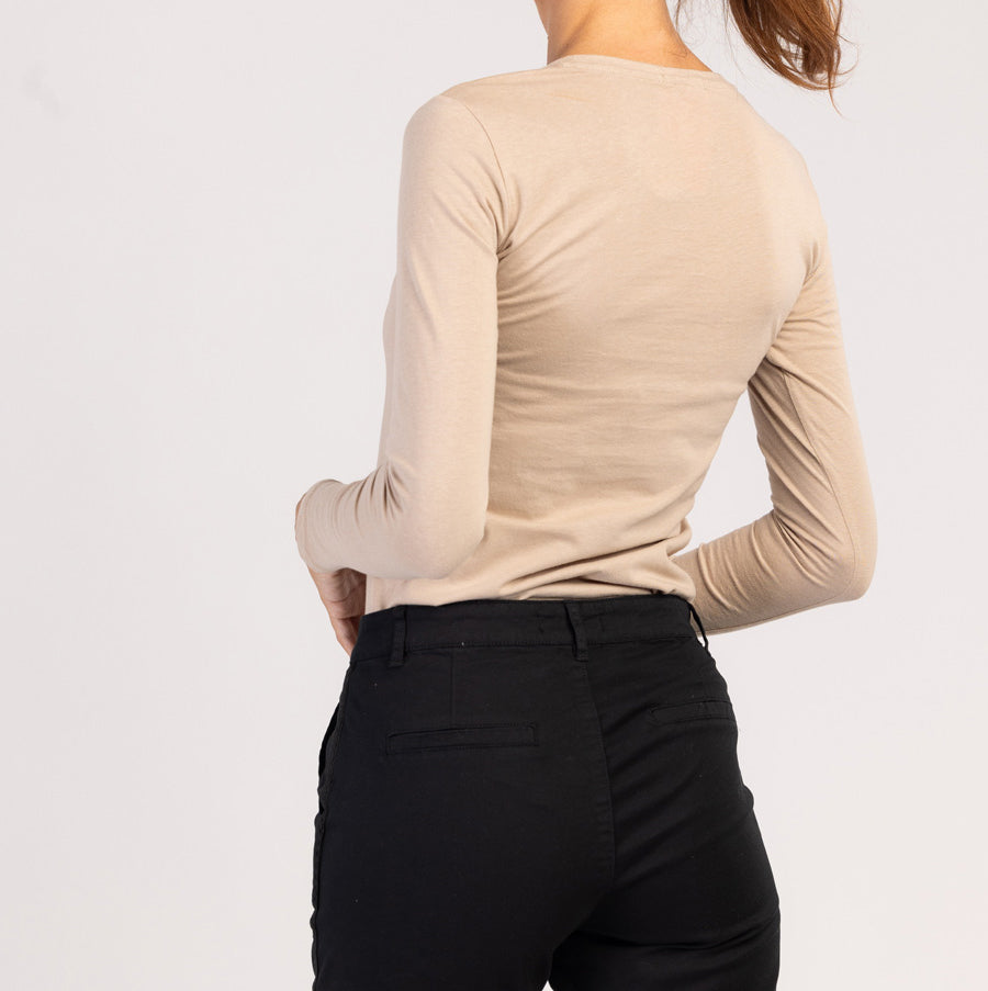 Un tricou cu mânecă lungă din bumbac care combină confortul și un aspect modern pentru purtare zilnică. Materialul moale și respirabil îmbrățișează confortabil pielea, în timp ce croiala clasică asigură o potrivire perfectă, fără restricții.